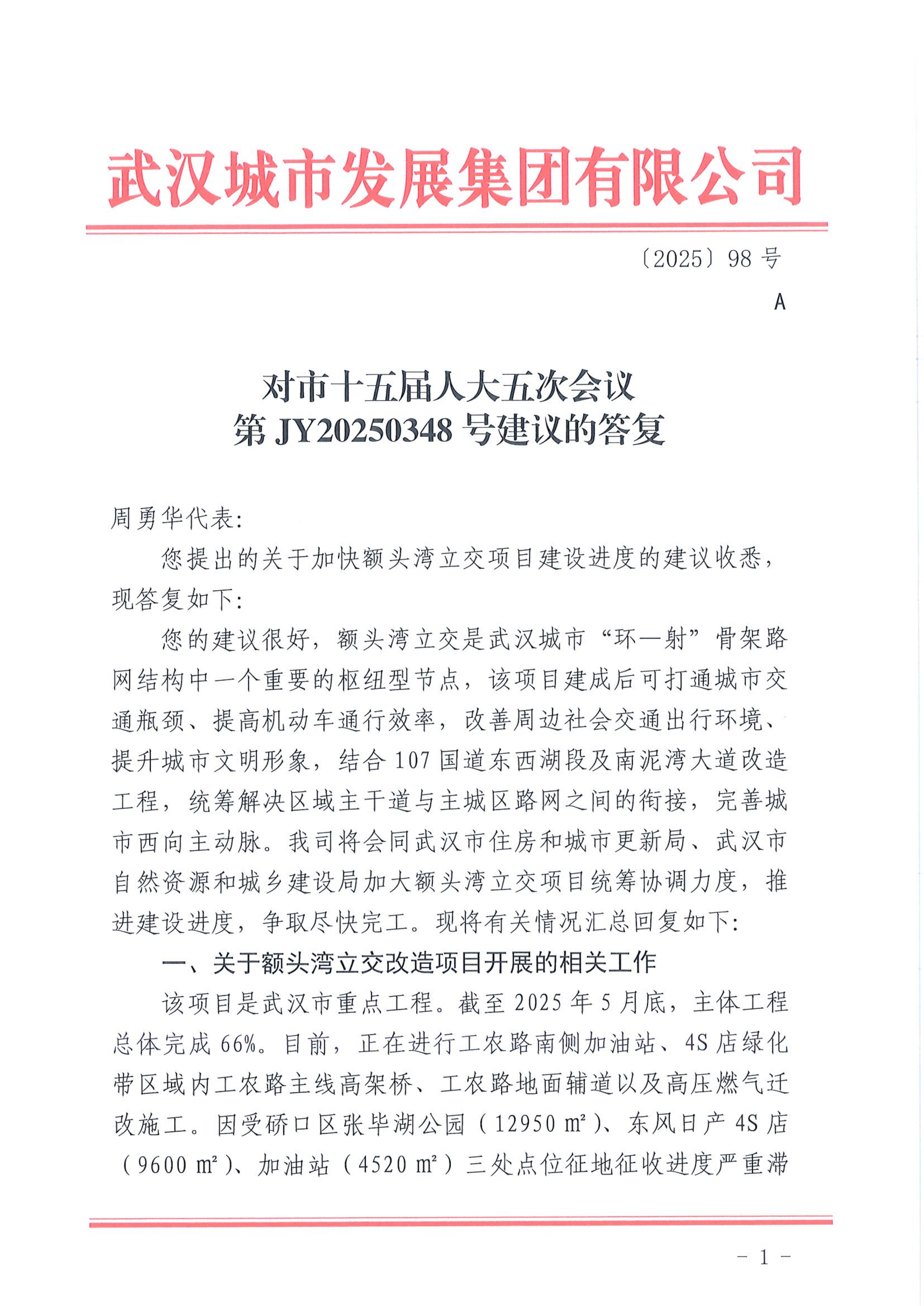 對市十五屆人大五次會議第JY20250348號建議的答復(fù)